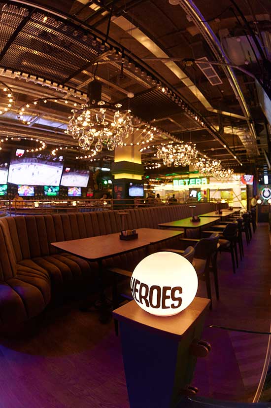«Heroes» — это совершенно новый формат отдыха, где драйв и азарт встречаются с гастрономическим удовольствием! Пространство объединило в себе всё лучшее для отличного вечера.